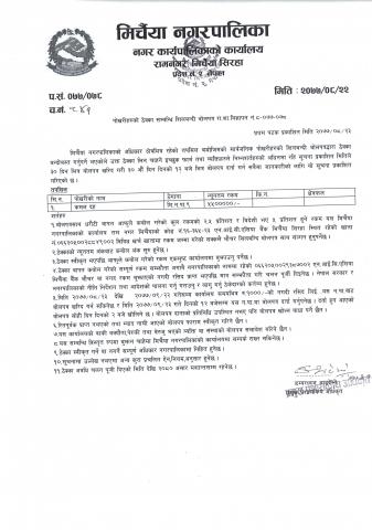मिर्चैया न.पा-१० जग्गा सम्बन्धी २१ दिने सूचना पठाईएको सम्बन्धमा ।