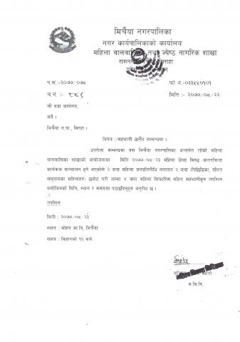मिर्चैया न.पा-१० जग्गा सम्बन्धी २१ दिने सूचना पठाईएको सम्बन्धमा ।