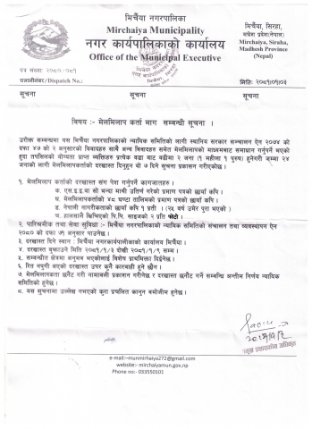 मिर्चैया न.पा-१० जग्गा सम्बन्धी २१ दिने सूचना पठाईएको सम्बन्धमा ।