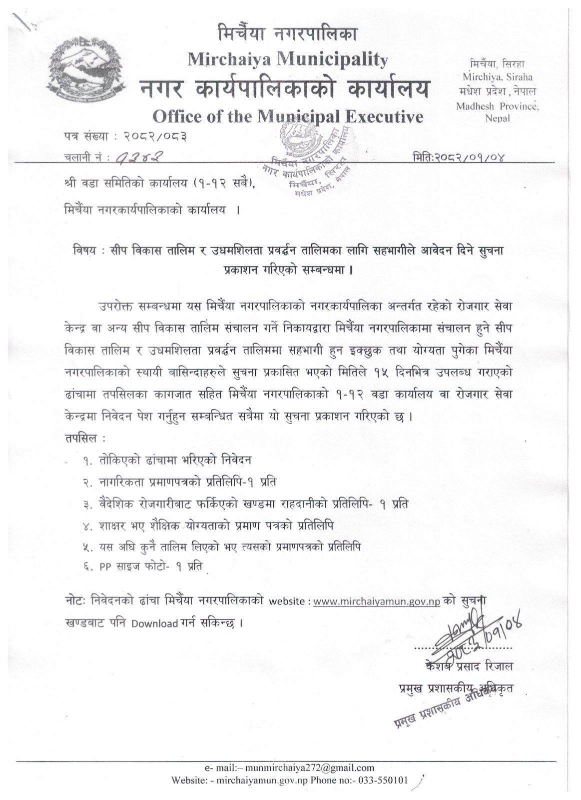 मिर्चैया न.पा भित्र कर्मचारीहरुको नामावली
