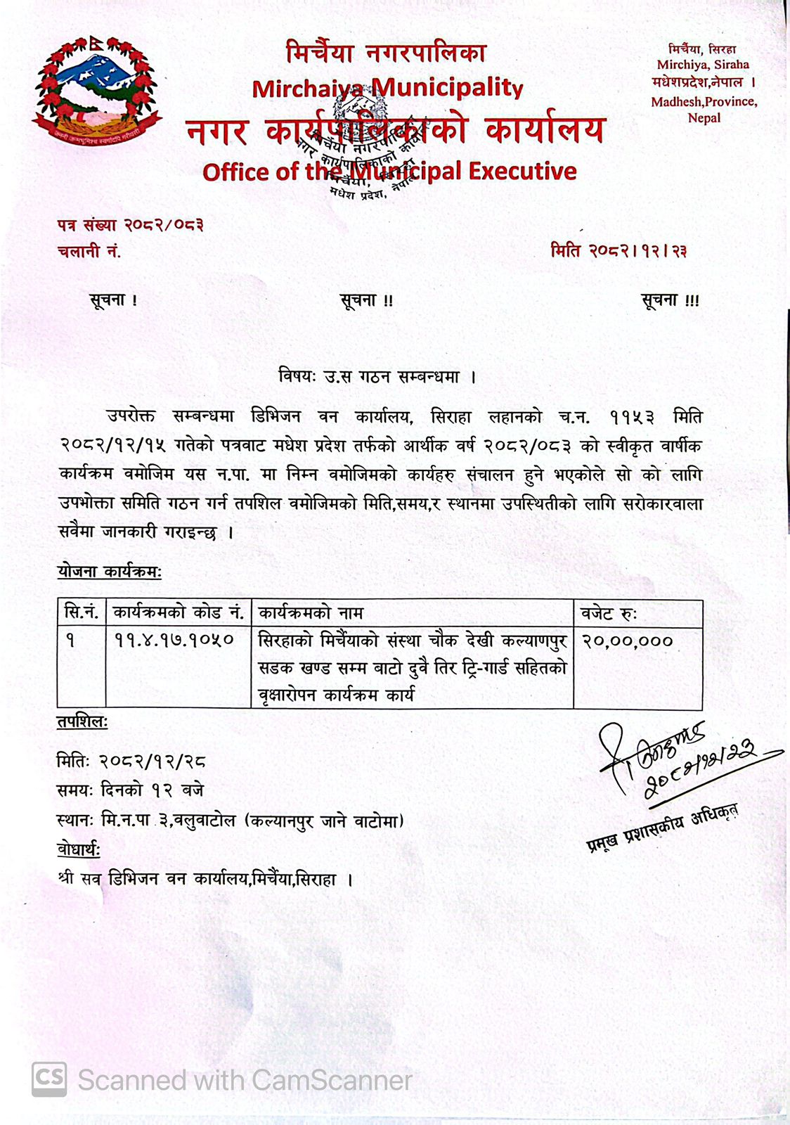 उपभोक्ता समिति गठन गर्ने सम्बन्धी सूचना ।